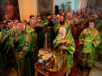 Его Высокопреосвященству сослужили: епископы Зарайский Константин и Луховицкий Петр, секретарь Епархиального управления Коломенской епархии протоиерей Андрей Рыбин, настоятель Вознесенской Давидовой пустыни игумен Сергий (Куксов), настоятель Свято-Духовского храма села Шкинь иерей Дионисий Киндюхин и клирики Коломенского благочиния.