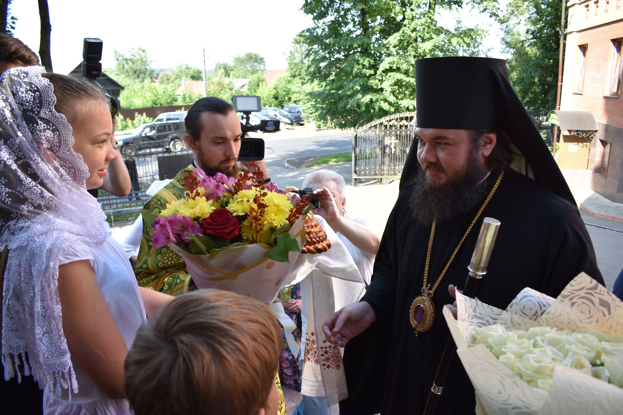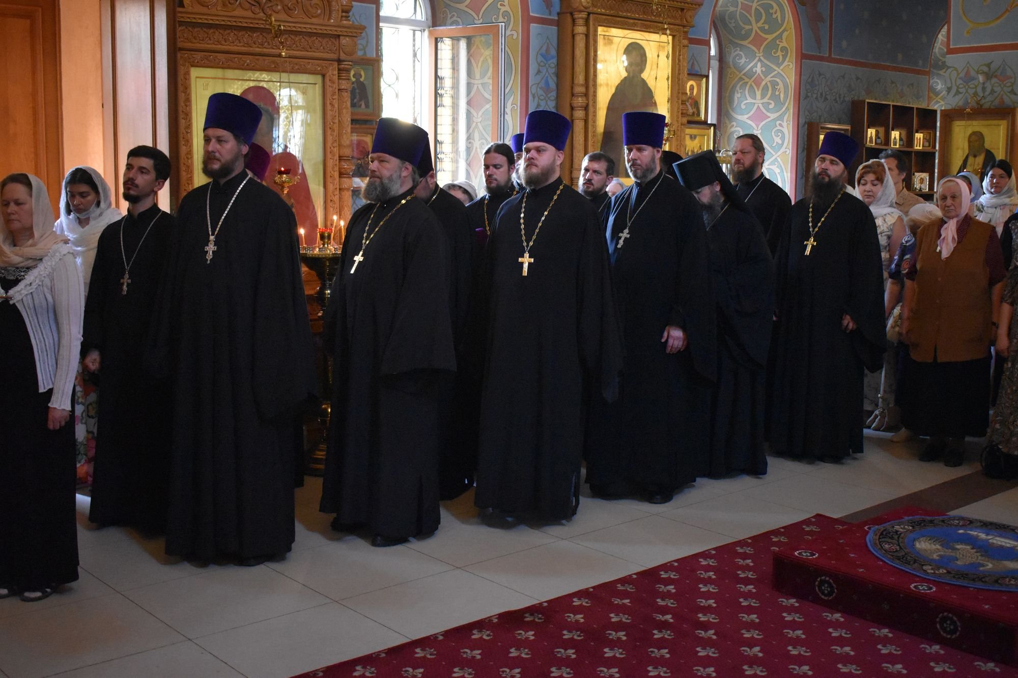 Его Преосвященству сослужили благочинный Пушкинского округа, настоятель Троицкого храма города Пушкино протоиерей Иоанн Монаршек (мл.), духовник Сергиево-Посадской епархии, настоятель Смоленского храма города Ивантеевки протоиерей Иоанн Монаршек (ст), благочинный Мытищинского церковного округа протоиерей Димитрий Оловянников, благочинный Королевского церковного округа священник Димитрий Поповский, настоятель Троицкого храма города Королев священник Сергий Монаршек и духовенство Пушкинского благочиния.