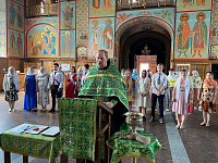 В Троицком соборе г. Щелково духовник гимназии священник Павел Чекалин совершил благодарственный молебен. Затем присутствующие заслушали видеообращение с поздравительной речью епископа Зарайского Константина.