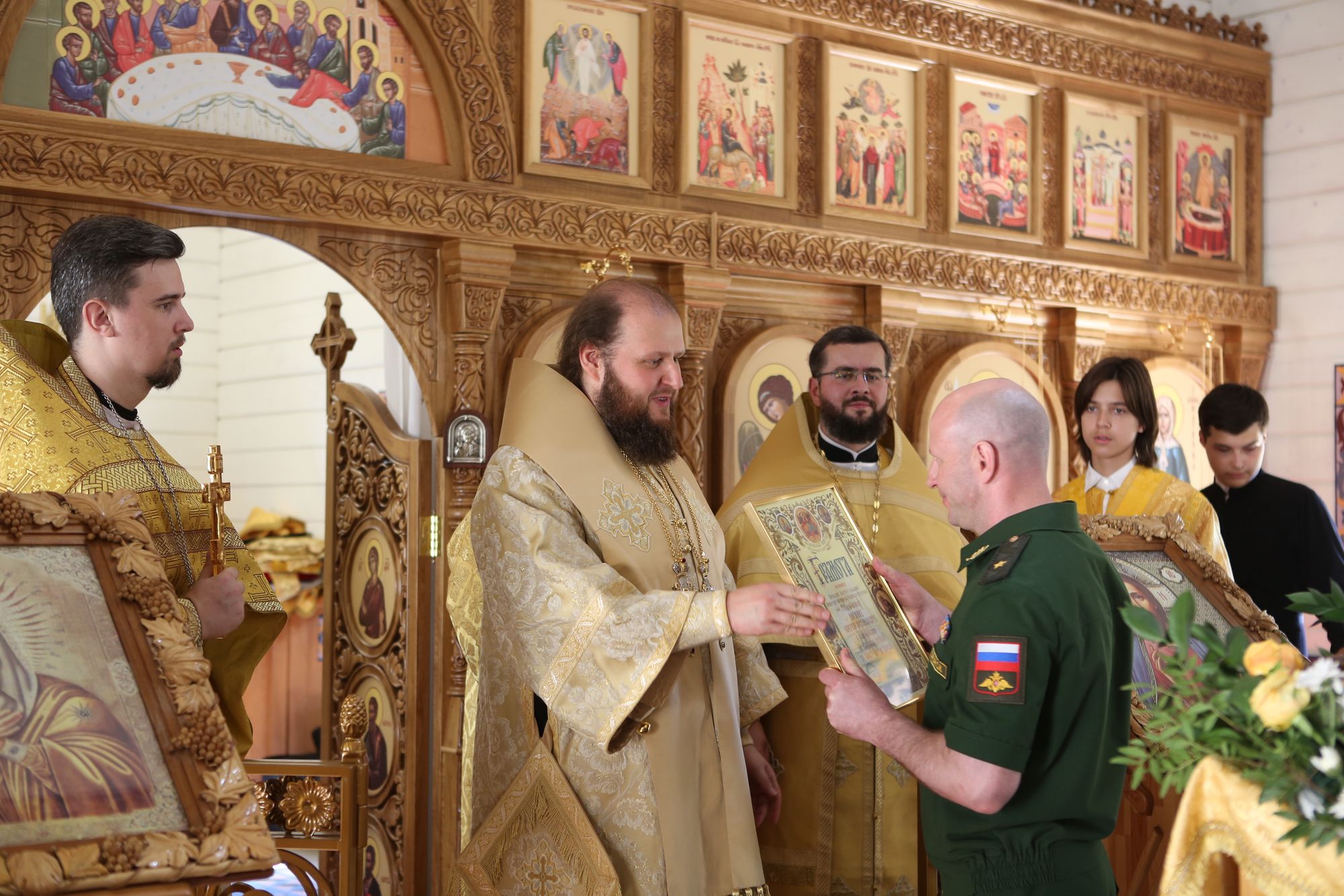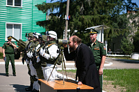 Владыка вручил грамоту «В благословение за усердные труды на благо Церкви Христовой» генерал-майору С. М. Паршину и преподнес икону благоверного князя Даниила Московского командиру части.