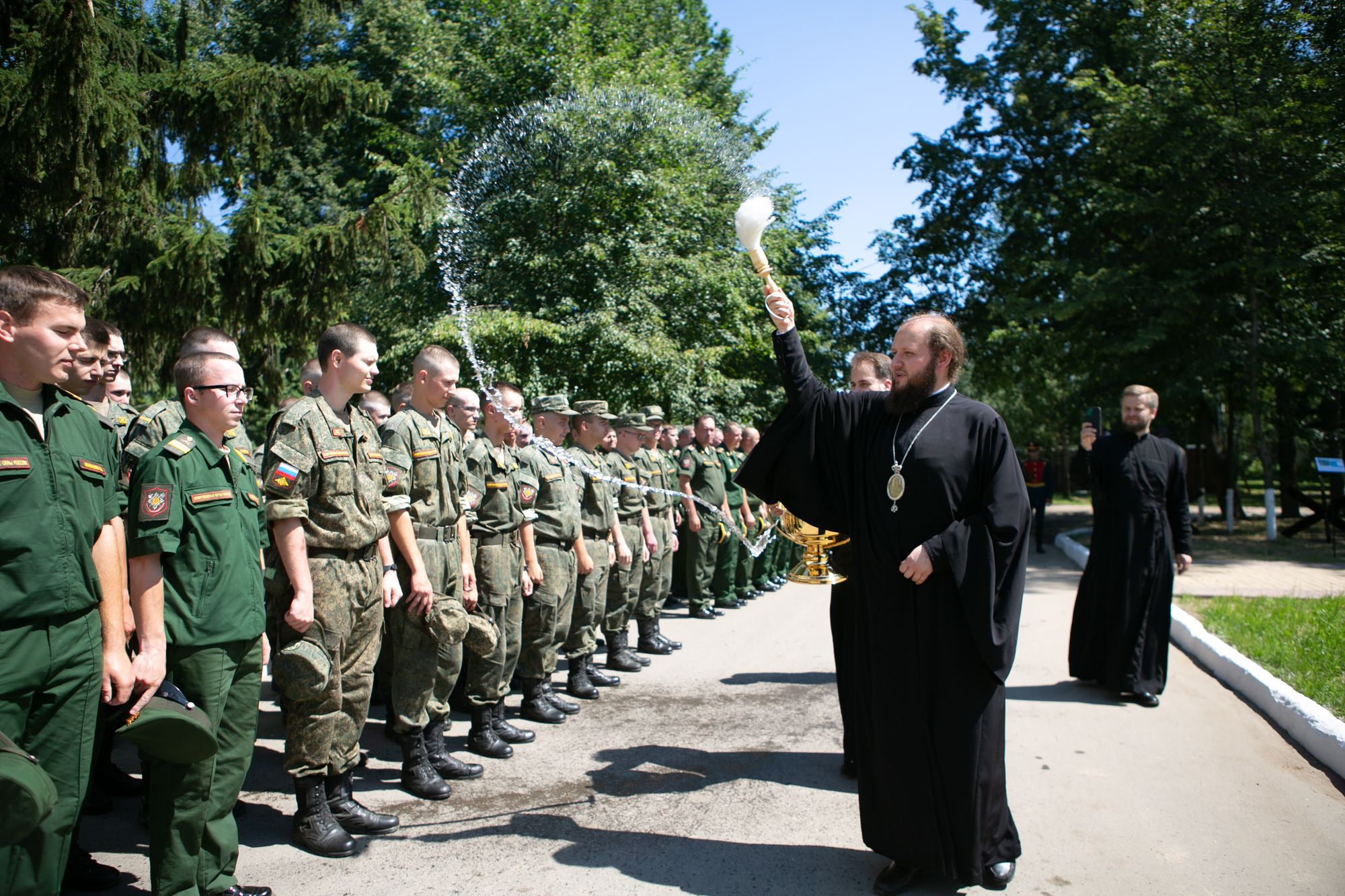 За богослужением молились начальник 9 Управления Министерства обороны Российской Федерации генерал-майор С. М. Паршин, командир части полковник А. Н. Олейник, глава городского округа Чехов Г. И. Артамонов, офицеры и военнослужащие воинской части, жители военного городка.