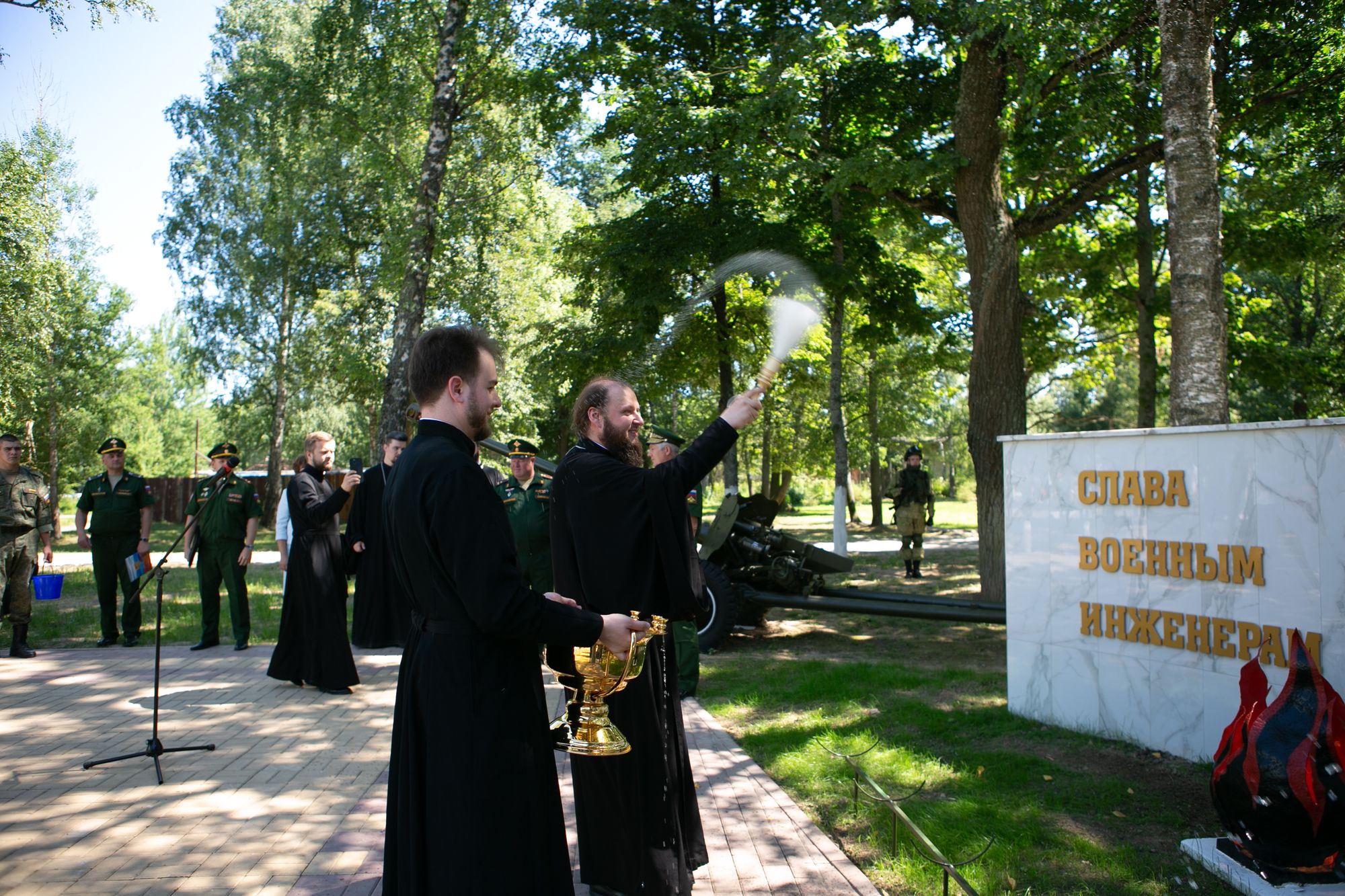 В завершение праздничных мероприятий состоялось открытие памятника инженерным войскам и возложение цветов к мемориалу.