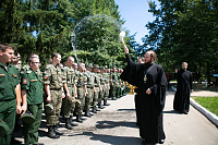 По окончании богослужения Его Высокопреосвященство обратился к верующим с архипастырским словом и поздравил военнослужащих с днём образования воинской части.