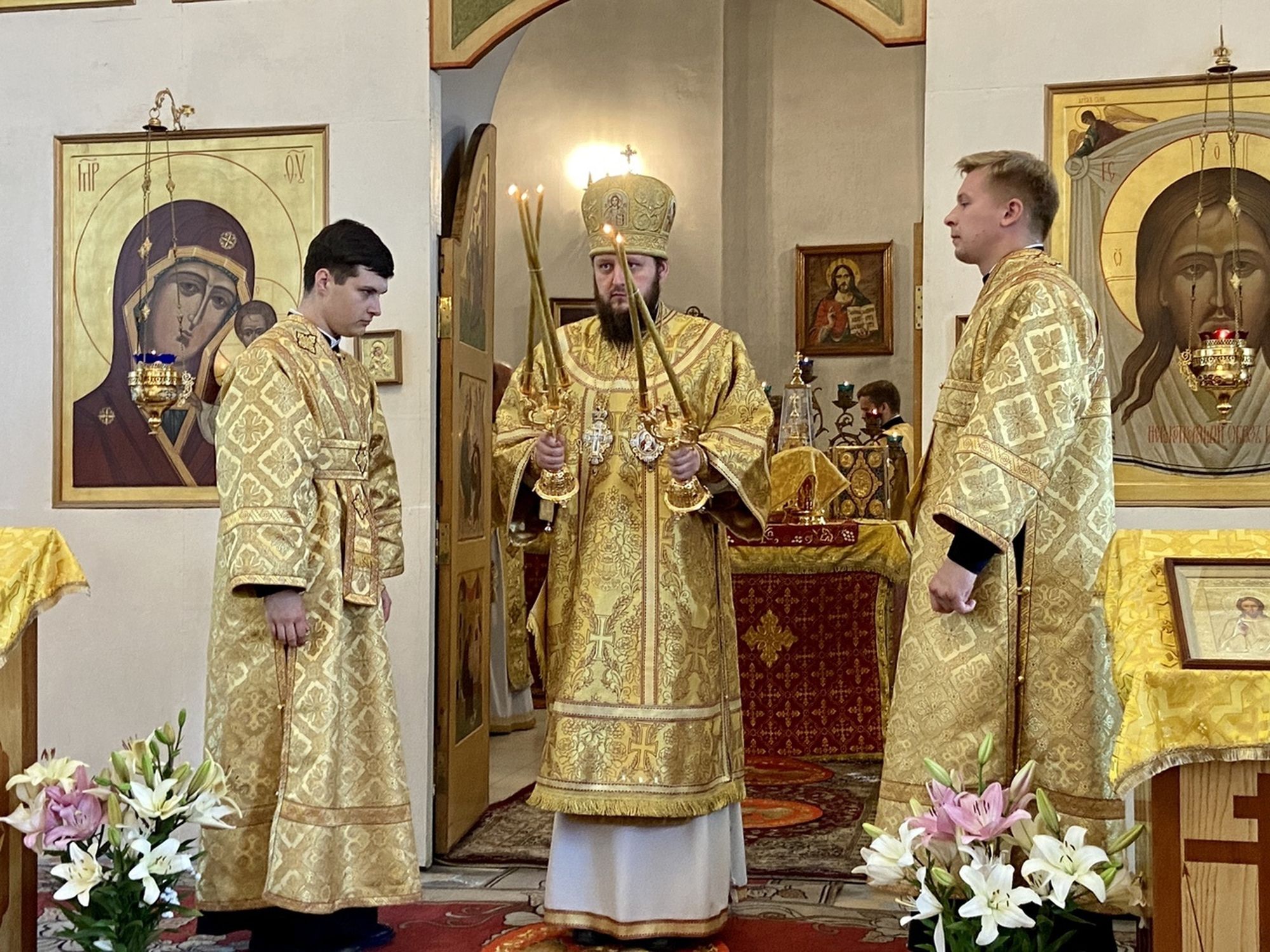 Его Высокопреосвященству сослужили благочинный Малинского церковного округа священник Андрей Андреев, благочинный Ступинского церковного округа протоиерей Евгений Ряполов, настоятель храма священник Димитрий Бирюк и настоятель Иоанно-Златоустовского храма города Воскресенск протоиерей Евгений Егоров.