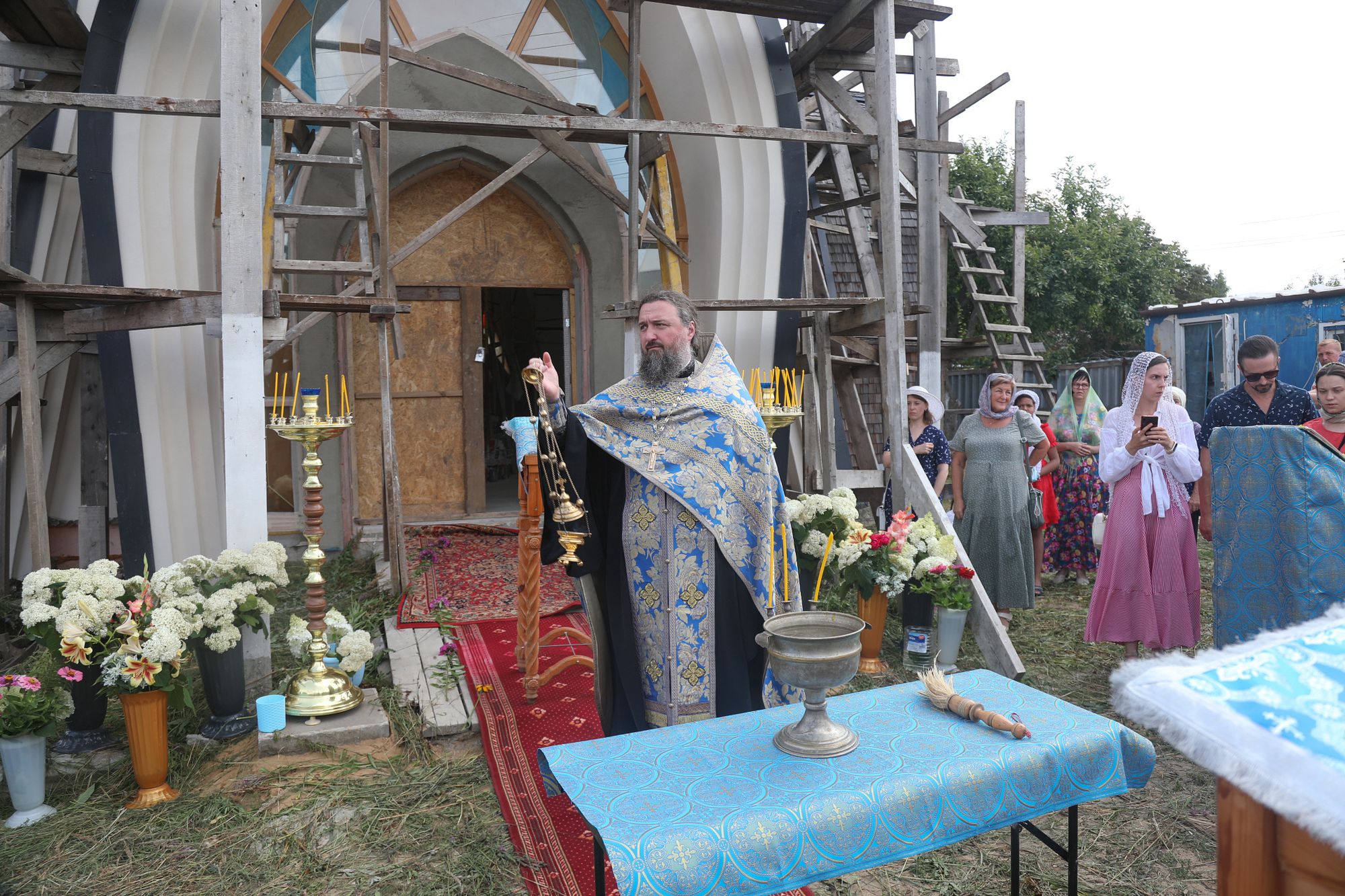 21 июля благочинный Богородского церковного округа протоиерей Марк Ермолаев в сослужении настоятеля Троицкого храма г. Электроугли священника Илии Максимова совершил водосвятный молебен у строящегося храма Казанской иконы Божией Матери в деревне Исаково.