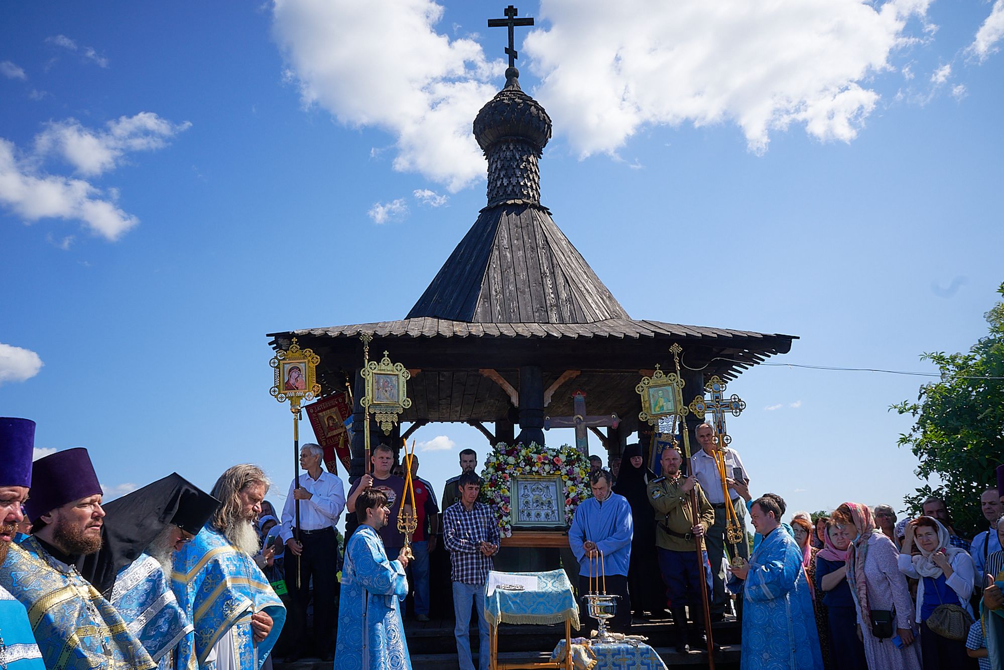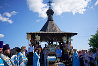 По окончании Литургии был совершен традиционный крестный ход ко святому источнику у места явления чудотворной иконы, где Владыка Фома совершил молебен и обратился к молящимся с архипастырским словом.