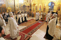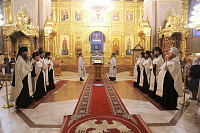 Его Высокопреосвященству сослужили наместник архимандрит Варфоломей (Петров) и клирики обители.