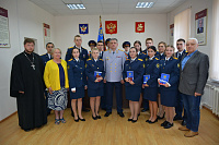 В завершение мероприятия к выпускникам обратился помощник начальника УФСИН России по Московской области по организации работы с верующими священник Михаил Куземка и вручил сотрудникам уголовно-исполнительной системы образ великомученика Георгия Победоносца.