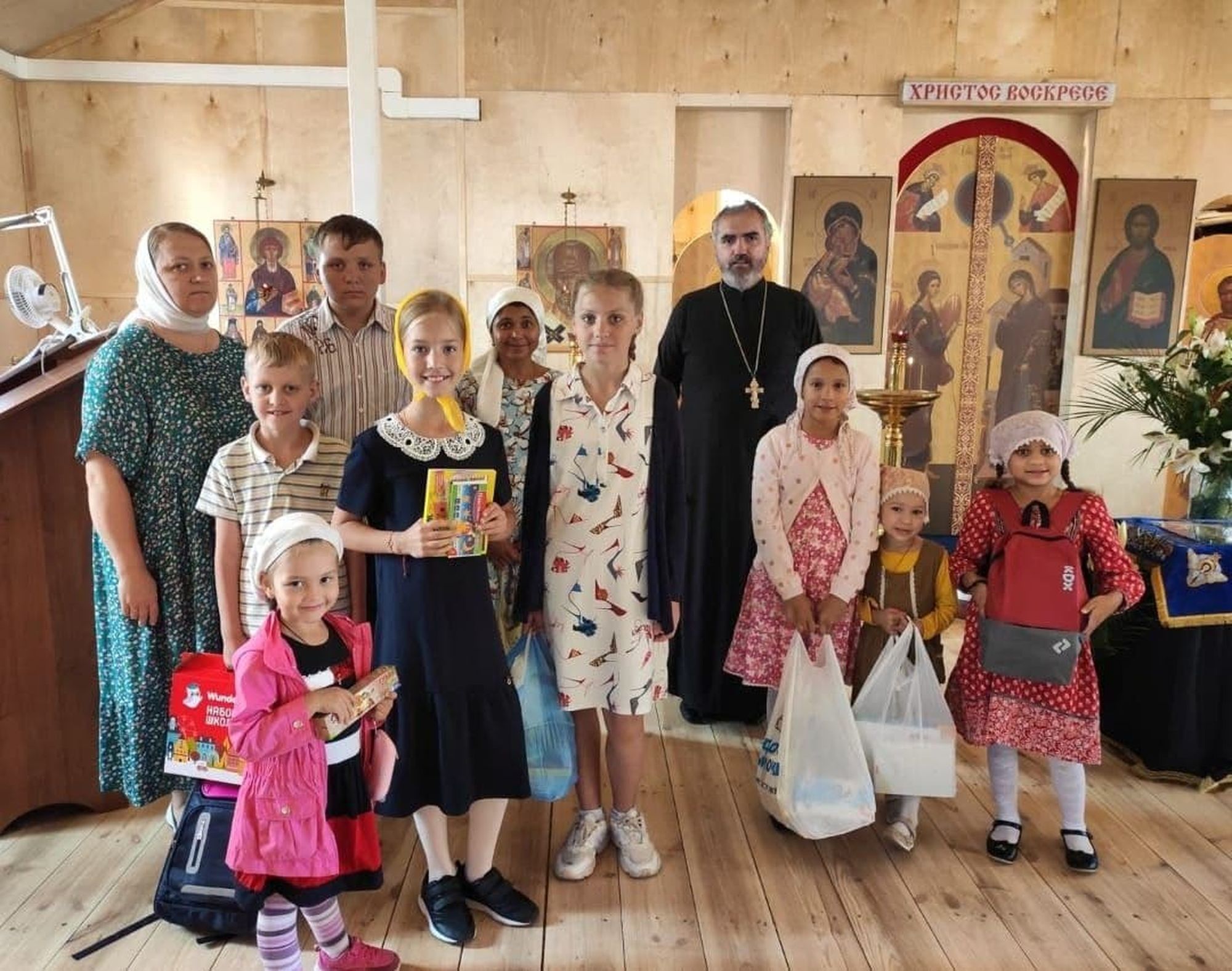 29 августа в Татианинском храме микрорайона Новая Трёхгорка г. Одинцово состоялась встреча с многодетными семьями прихода в рамках благотворительной акции «Соберём детей в школу». По окончании Литургии настоятель храма иерей Иоанн Филипас обратился к собравшимся с тёплыми пожеланиями и вручил им подарки от прихода.