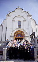 По окончании богослужения архиепископ Аксий поздравил духовенство и мирян с историческим для прихода событием и обратился к молящимся с архипастырским словом.