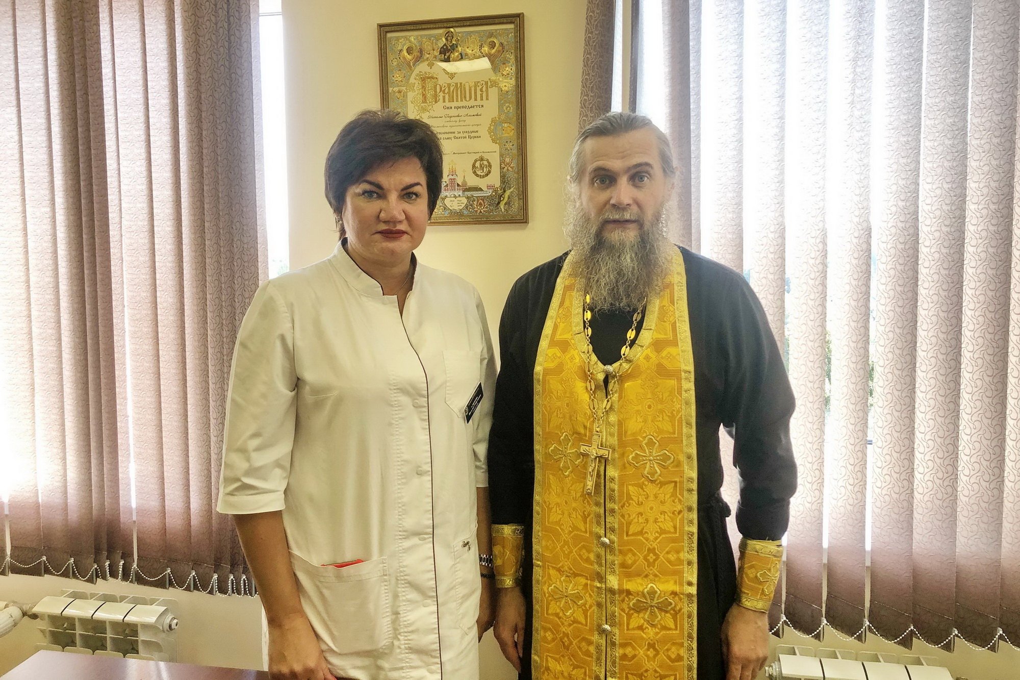 Затем отец Виталий встретился с главным врачом роддома Н. Г. Алимовой.