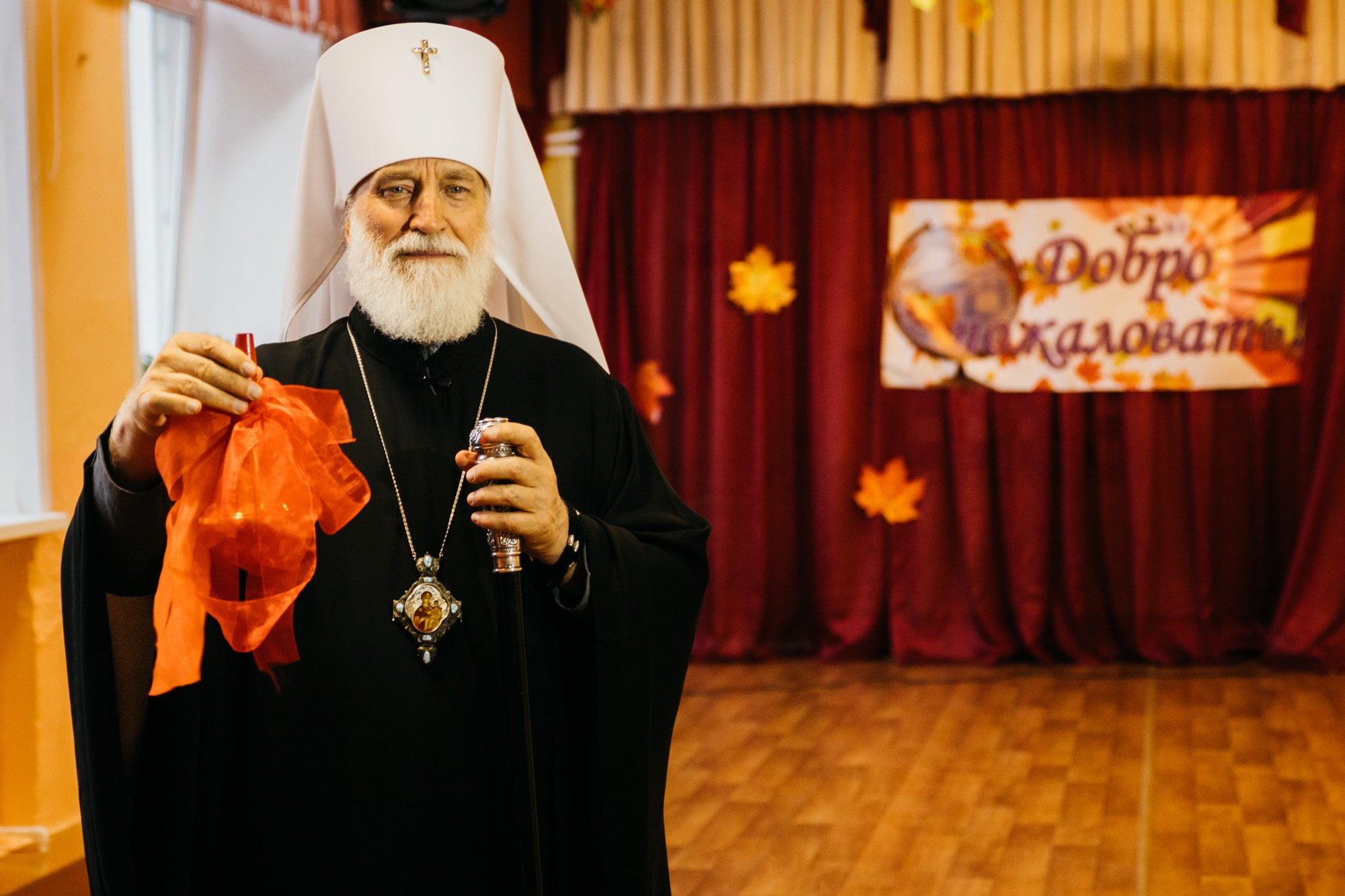 Затем Владыка посетил городскую школу №7, где принял участие в торжественной линейке и дал первый звонок.