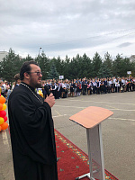 1 сентября благочинный Дмитровского округа протоиерей Афанасий Чорногуз принял участие в праздничных мероприятиях, посвященных Дню знаний в гимназии «Логос», расположенной рядом с Успенским кафедральным собором.