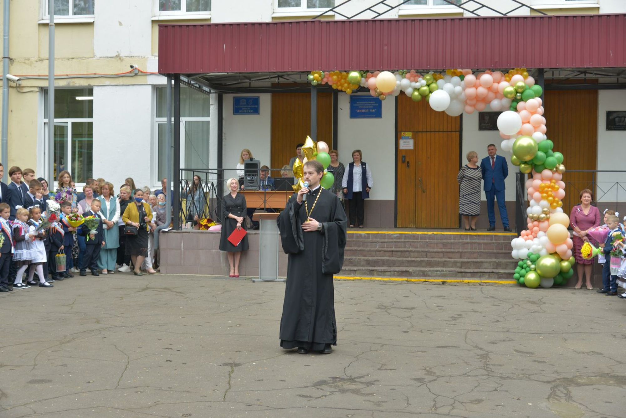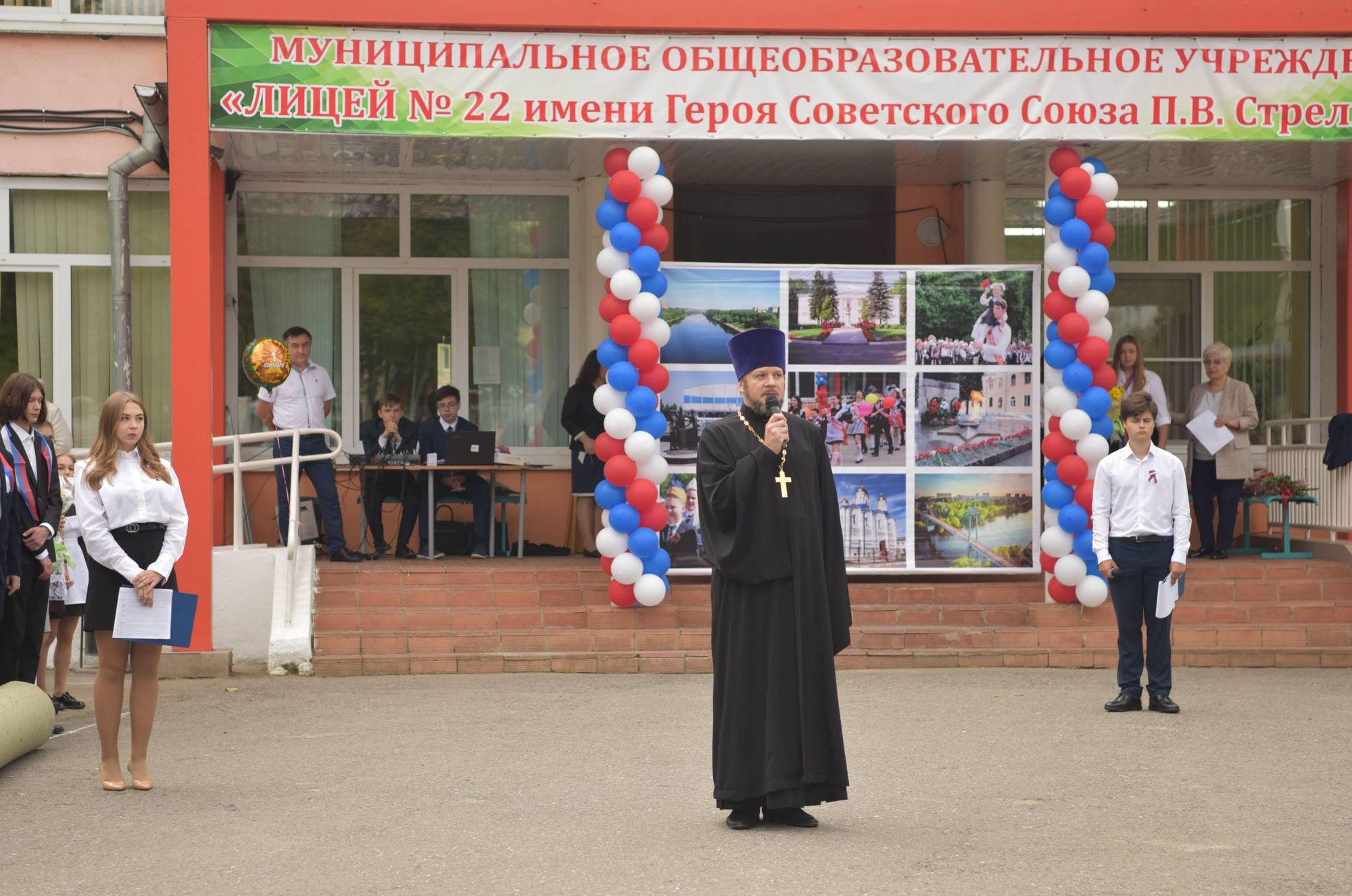 На торжественной линейке в лицее № 22 детей и учителей поздравили с началом нового учебного года первый заместитель главы городского округа Воскресенск О. В. Сайкина, директор лицея А. А. Копцов, почетный гражданин Воскресенского района Н. Д. Козлов, директор Воскресенского информационного агентства, почетный гражданин городского округа Воскресенск Л. И. Башкирова и благочинный 1-го Воскресенского округа протоиерей Сергий Якимов.