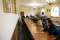 По окончании богослужения в приходском центре состоялась установочная лекция, обучающимся были представлены преподаватели и согласовано расписание занятий.