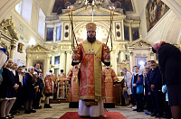 Его Преосвященству сослужили благочинные округов Сергиево-Посадской епархии: Королёвского - иерей Димитрий Поповский, Долгопрудненского - протоиерей Андрей Хмызов, Солнечногорского - протоиерей Антоний Тирков, настоятель Космо-Дамианского храма протоиерей Виктор Нестеров, заместитель благочинного Королёвского округа протоиерей Александр Бекещенко и духовенство епархии.