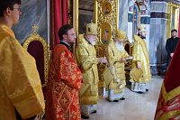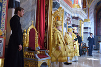 Вечером 10 сентября Его Высокопреосвященство молился за всенощным бдением, которое совершил митрополит Санкт-Петербургский и Ладожский Варсонофий в Воскресенском соборе обители.