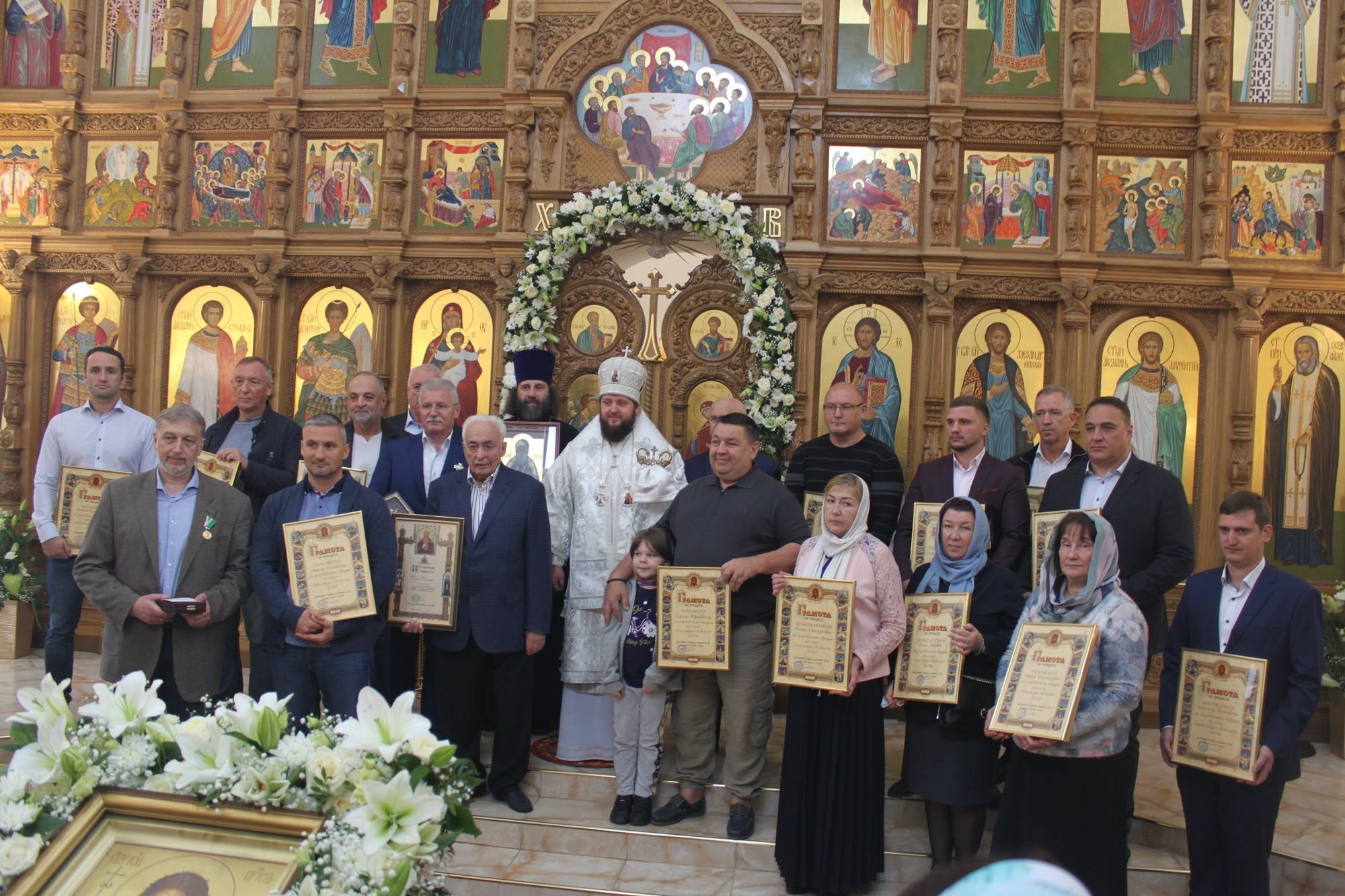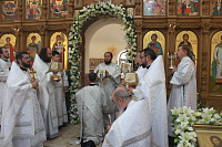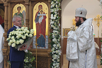 По завершении богослужения архиепископ Аксий обратился к духовенству и прихожанам с архипастырским словом, после чего вручил Патриаршие и епархиальные награды особенно потрудившимся в деле строительства храма.