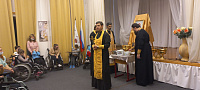 22 сентября, в день памяти святых праведных Богоотец Иоакима и Анны, в рамках акции «Согреем детские сердца», священнослужители Дмитровского и Яхромского благочиний совершили молебен перед началом учебного года в Дмитровском доме-интернате для детей с физическими недостатками.