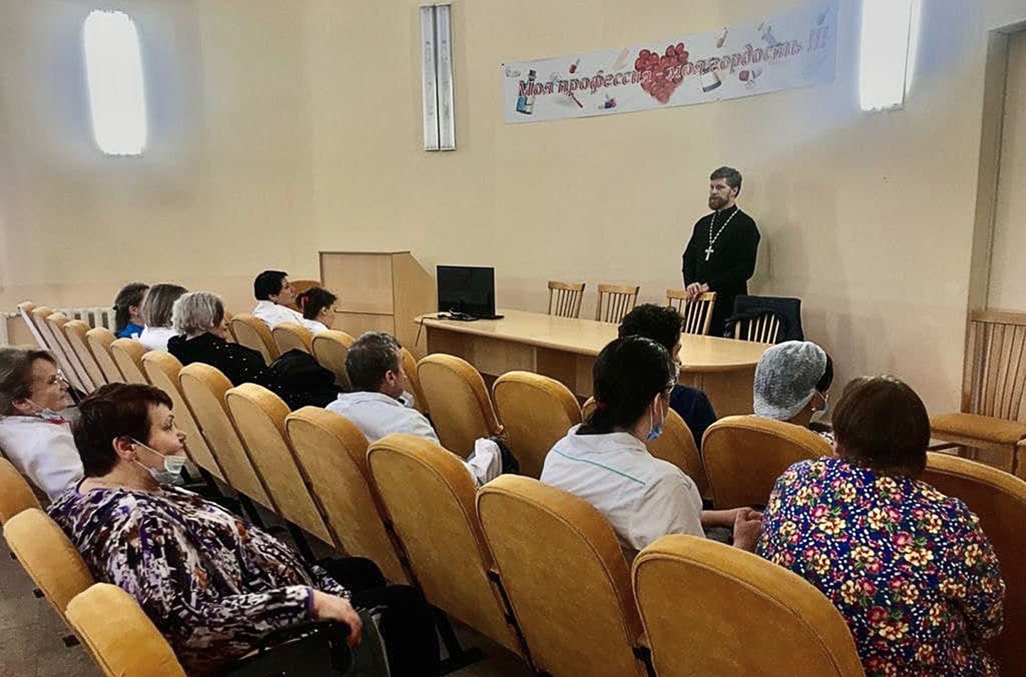 23 сентября благочинный Королёвского округа иерей Димитрий Поповский встретился с медицинскими сотрудниками филиала королёвской городской больницы «Юбилейный» и провел с ними духовную беседу.