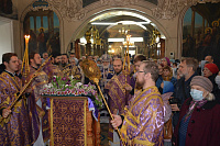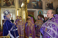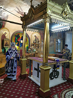 По заамвонной молитве перед иконой праздника было совершено славление, а по отпусте Владыка Павел обратился к духовенству и молящимся с архипастырским словом.