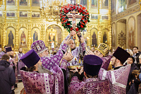 Накануне праздника Его Высокопреосвященство возглавил в соборе всенощное бдение с чином Воздвижения Креста.