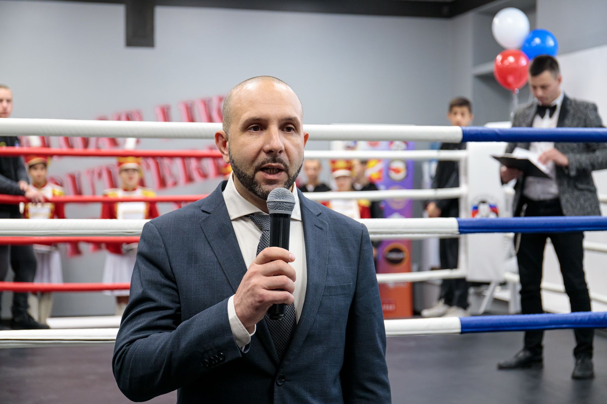 В церемонии открытия приняли участие исполняющий обязанности главы Орехово-Зуевского городского округа Р. В. Заголовацкий, председатель комитета по делам молодежи, спорту, туризму и физической культуре А. М. Борисов, президент Федерации бокса Р. В. Андреев и другие представители администрации и спорта.