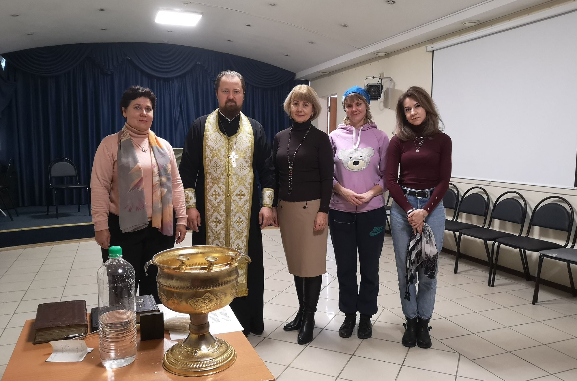 По окончании богослужения батюшка пожелал сотрудникам помощи Божией в трудах и окропил святой водой аудитории и служебные помещения школы.