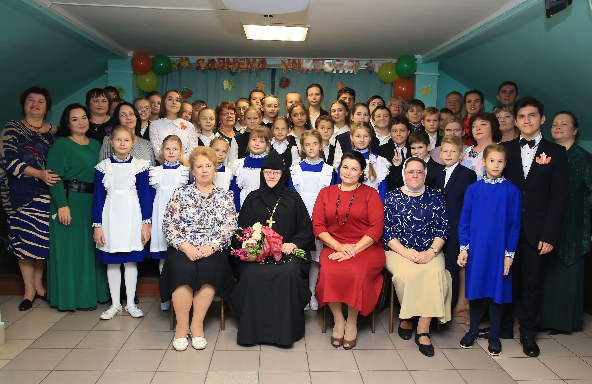 По окончании учебных занятий гимназисты представили праздничную концертную программу «С Днём учителя!». На мероприятии присутствовали игумения Введенского Владычнего женского монастыря Алексия (Петрова), педагоги гимназии и родители учащихся.