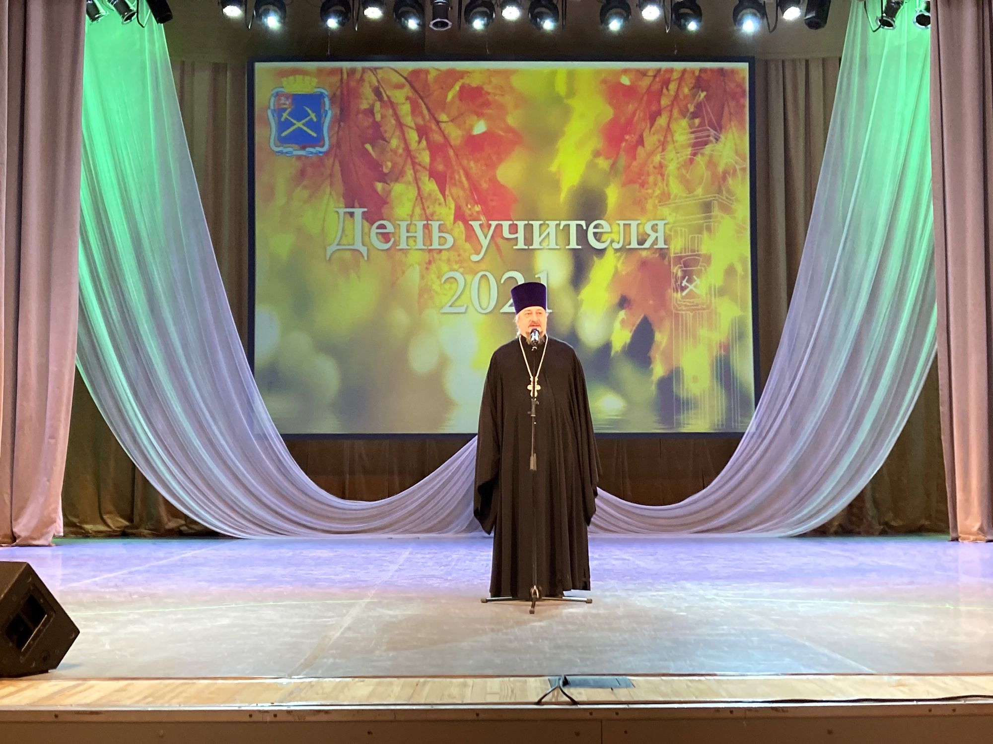 Во дворце культуры «Октябрь» городского округа Подольск состоялось торжественное собрание, посвящённое празднованию Дня учителя. Выступали руководители города, чествовали активных работников образования. Педагогов с их профессиональным праздником поздравил благочинный Подольского округа протоиерей Олег Сердцев. Батюшка он выразил благодарность учителям за их нелёгкий труд, пожелал им успехов и Божьего благословения.