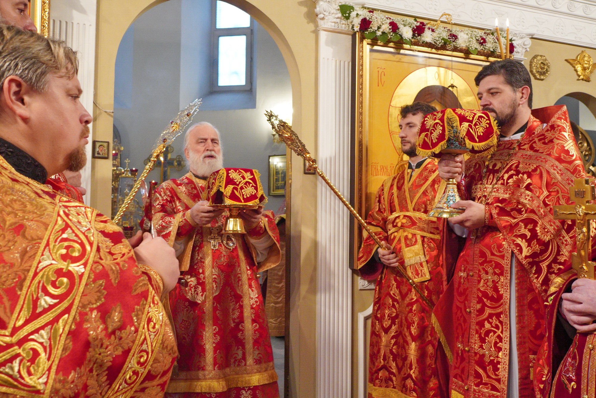 Богослужебные песнопения исполнил приходской хор под управлением К. В. Герасименкова.