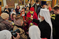 По заамвонной молитве перед иконой новомучеников Жуковских было совершено славление, после чего митрополит Павел обратился к молящимся с архипастырским словом.