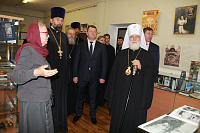Затем Его Высокопреосвященство посетил церковный историко-археологический кабинет, расположенный в здании приходской воскресной школы и посвященный жизни и подвигу новомучеников Жуковских.