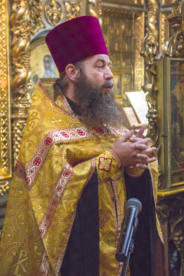 Проповедь по запричастном стихе произнёс клирик храма Ахтырской иконы Божией Матери села Ахтырка Сергиево-Посадского района протоиерей Димитрий Беженарь.