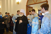 Его Высокопреосвященству сослужили секретарь Коломенского епархиального управления протоиерей Андрей Рыбин, благочинный I Воскресенского округа и настоятель храма протоиерей Сергий Якимов, клирики благочиния.