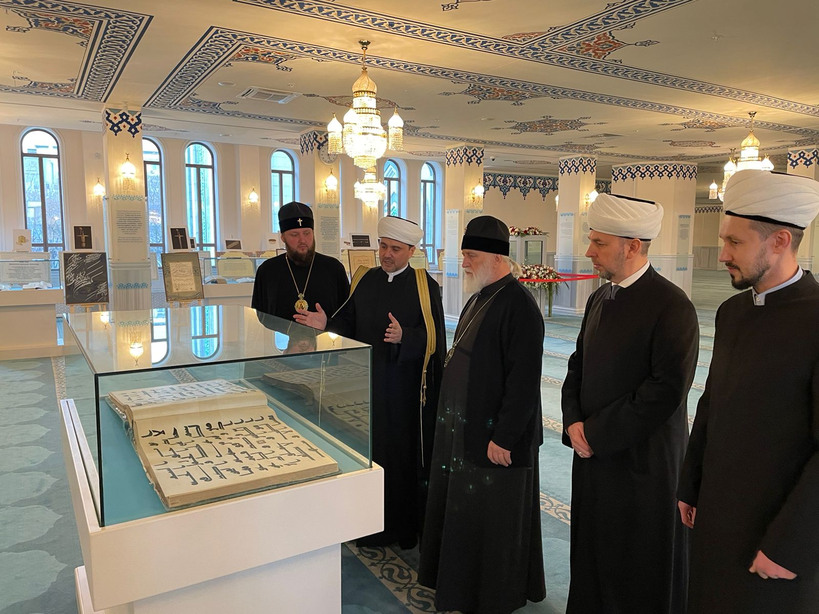 Муфтий Рушан провёл для гостей экскурсию по Московской соборной мечети, рассказал об истории главного мусульманского храма, о проведённой реконструкции, продемонстрировал внутреннее убранство и познакомил с экспонатами действующего при мечети музея.