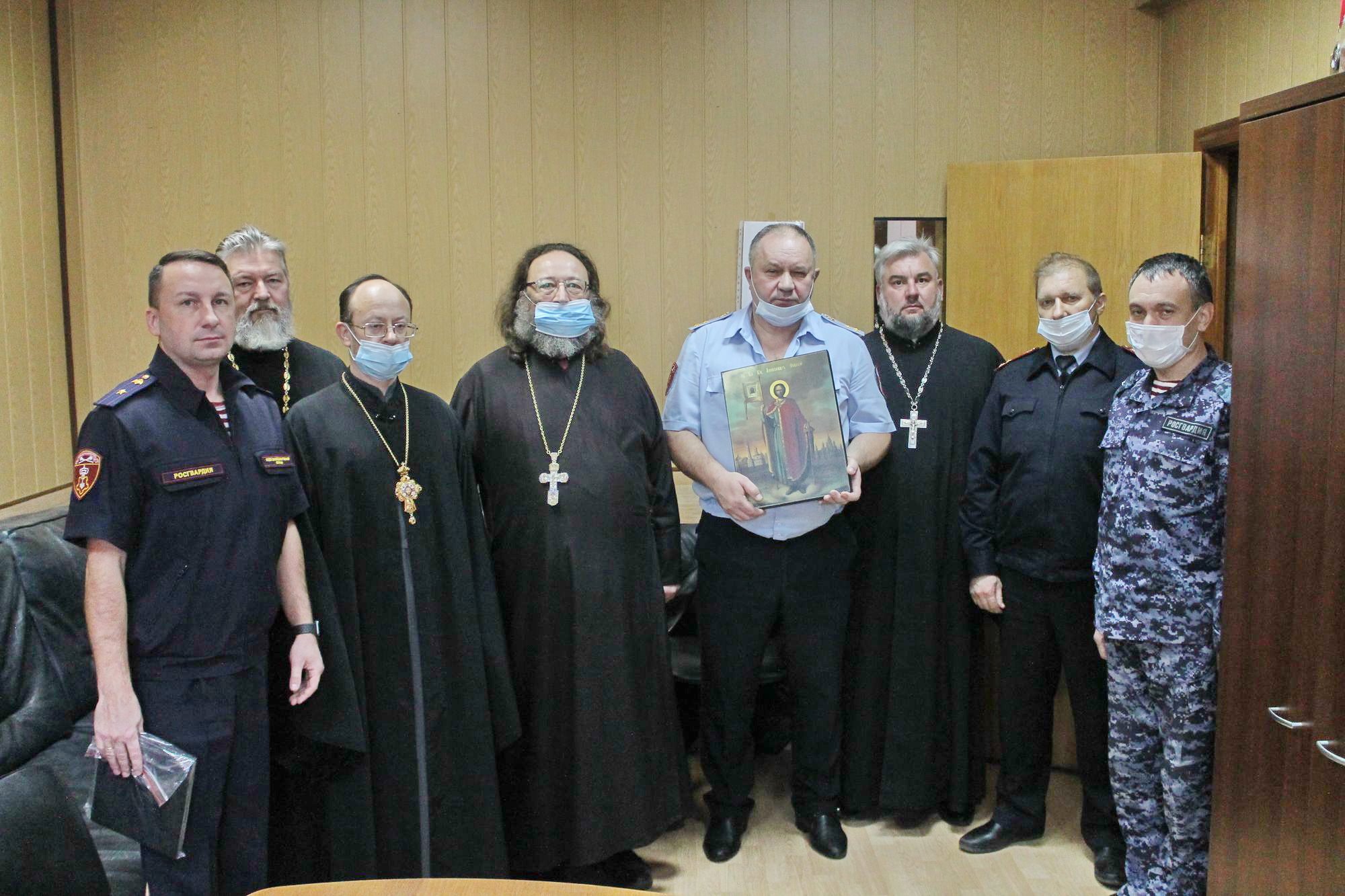 Во время встречи обсуждались вопросы дальнейшего взаимодействия в деле духовного окормления и просвещения сотрудников вневедомственной охраны Росгвардии.