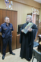 Священнослужители освятили служебные автомобили и в знак благословения преподнесли начальнику отдела М. А. Сумину икону святого благоверного великого князя Александра Невского.