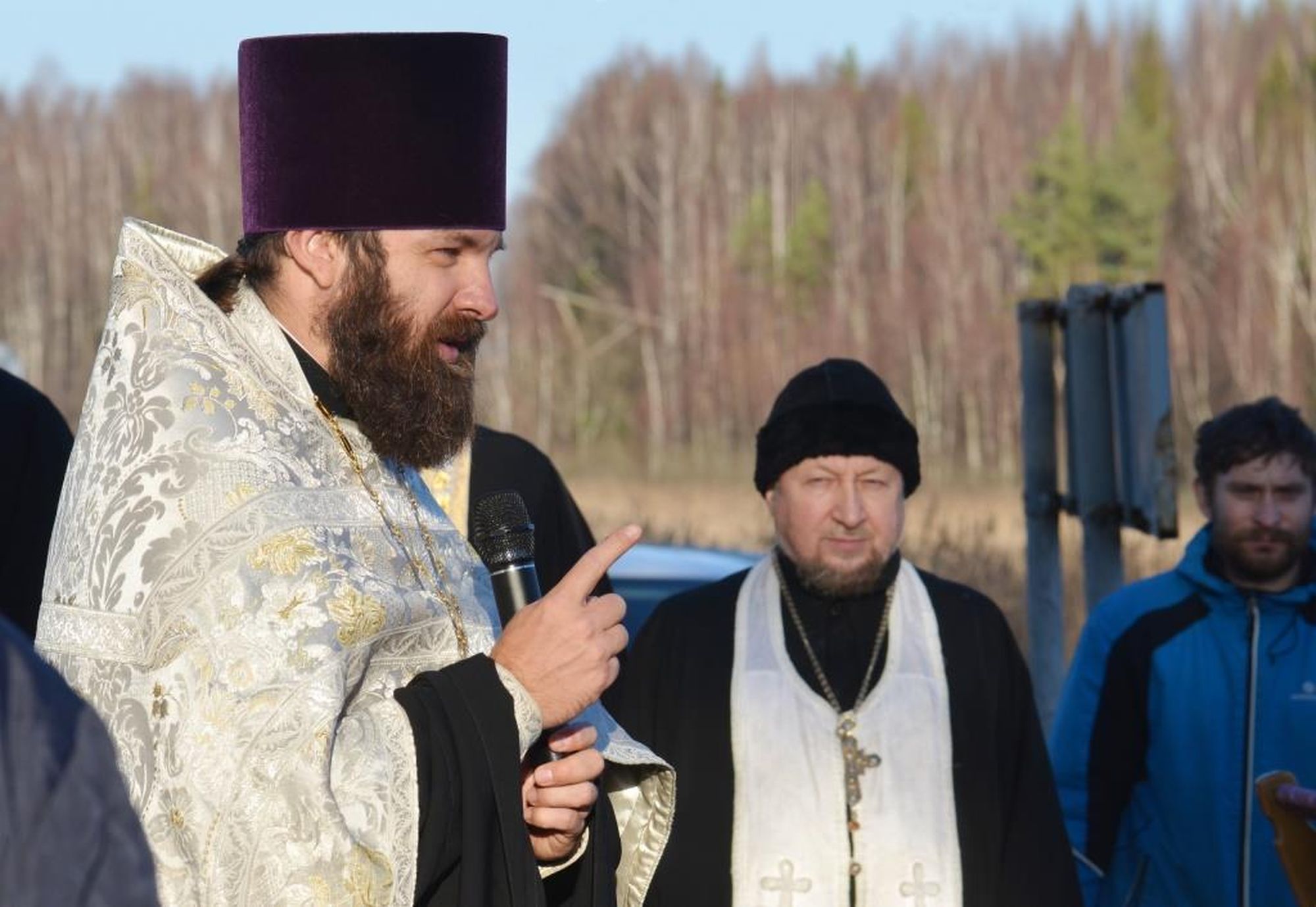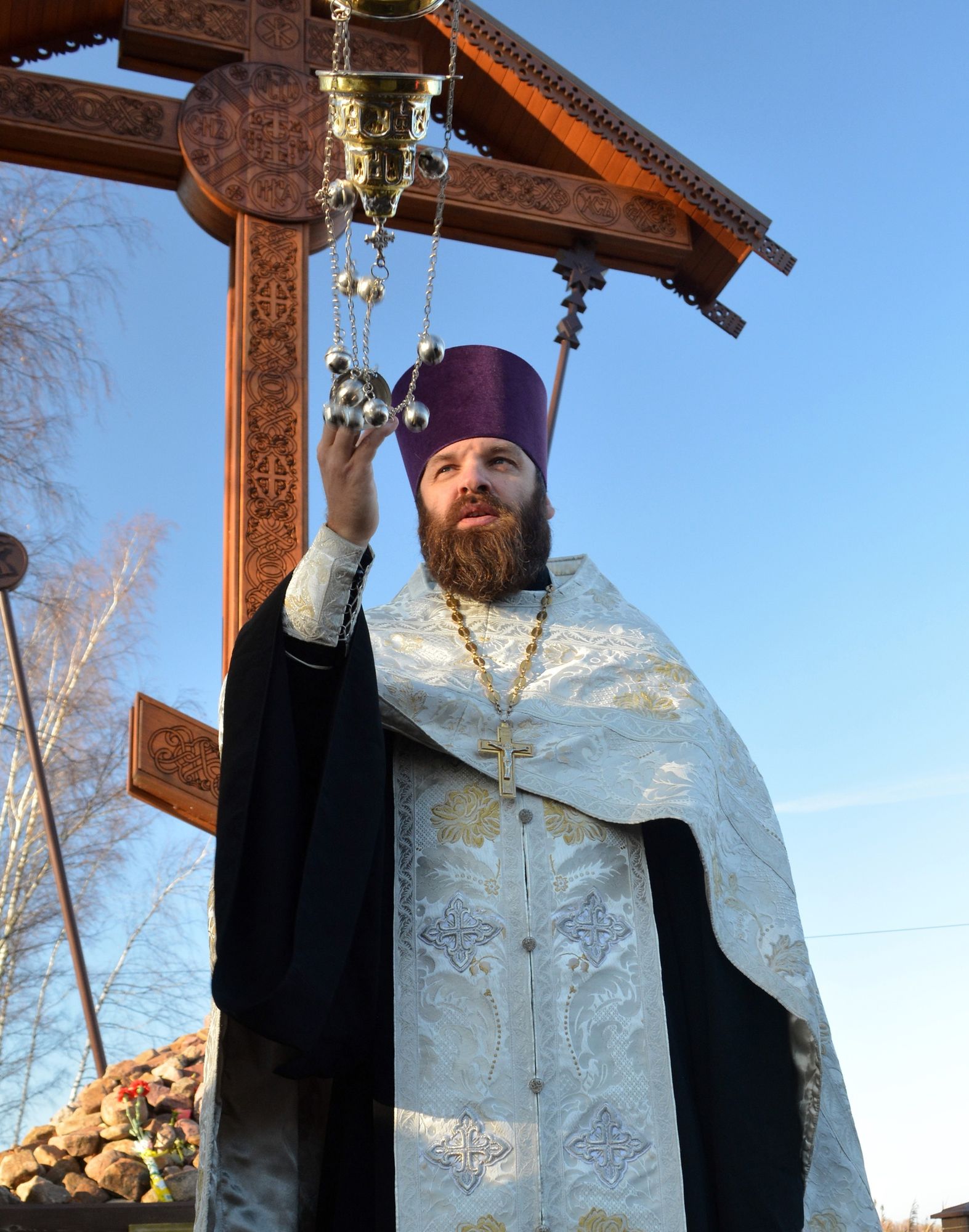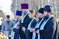 Перед началом панихиды собравшиеся возложили цветы к подножию Поклонного креста. Отец Павел обратился к собравшимся с пастырским словом.