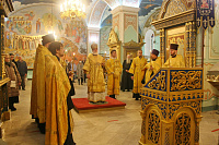Его Высокопреосвященству сослужили секретарь Коломенского епархиального управления, ключарь собора протоиерей Андрей Рыбин и клирики собора.