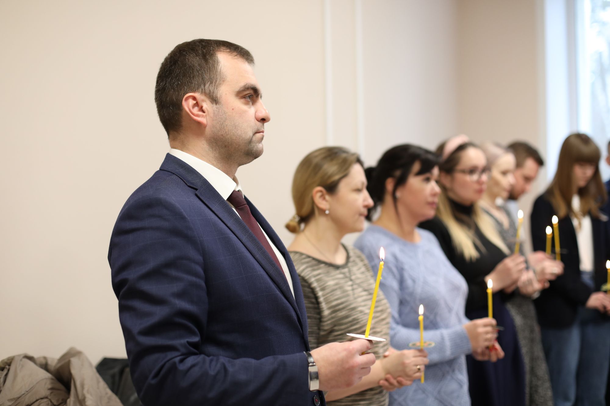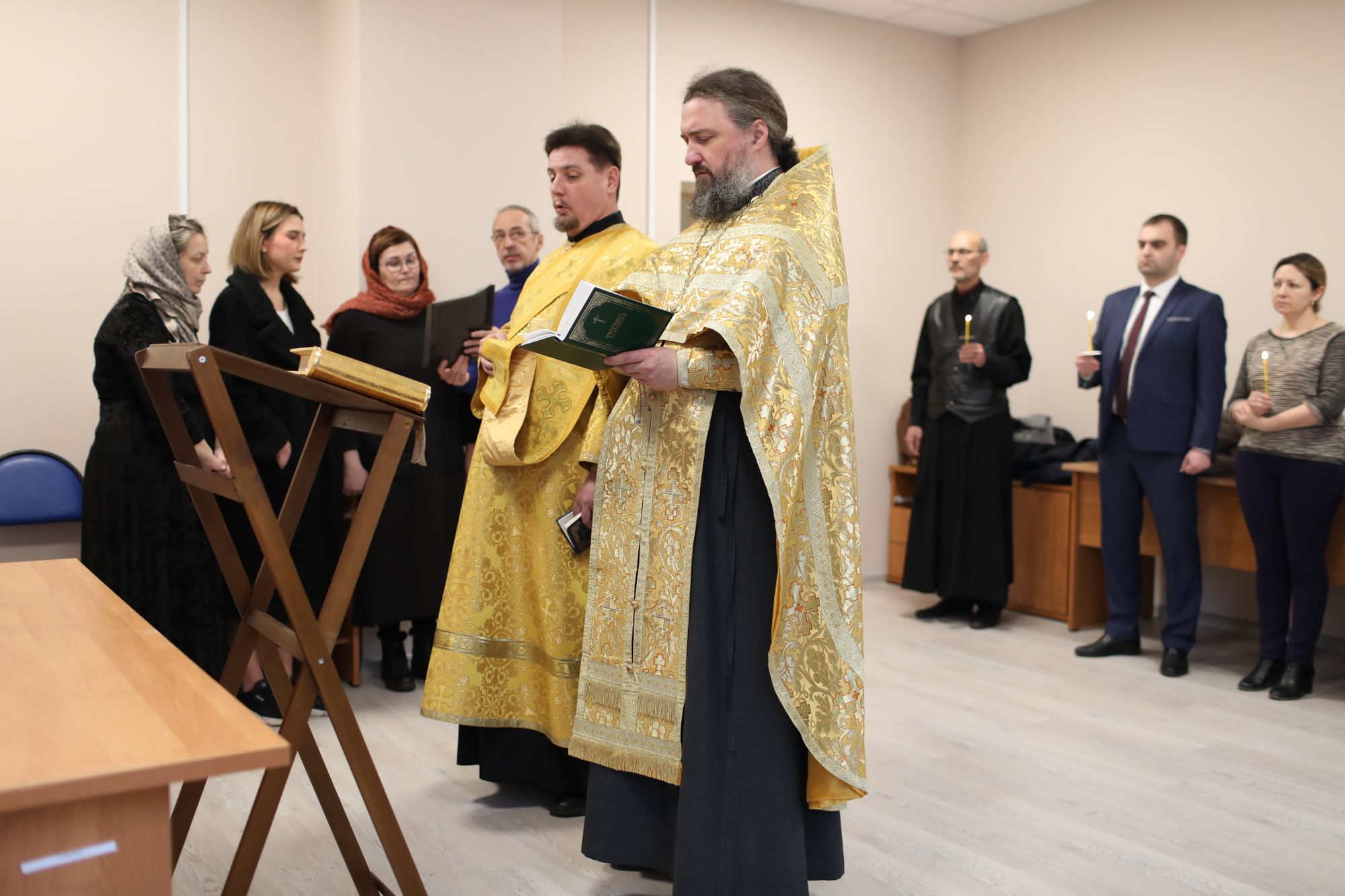 За богослужением молились сотрудники отдела во главе с руководителем Д. В. Князевым.