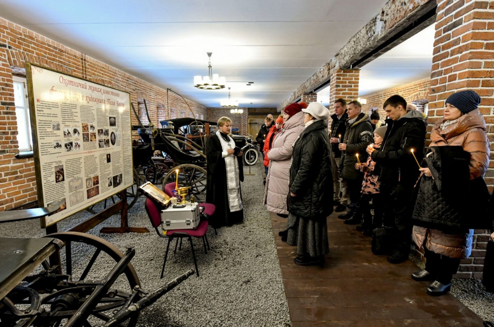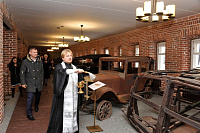 20 ноября в музее «Усадьба Брюса» благочинный Лосино-Петровского церковного округа священник Павел Галушко освятил восстановленный каретный двор, в котором разместилась новая экспозиция «Ретроспектива средств передвижения – от карет и саней до автомобиля».