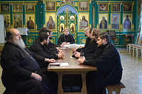 Обсуждались подготовка к предстоящему празднованию Дня памяти святого благоверного князя Александра Невского, вопросы приходской, административной и внебогослужебной деятельности духовенства благочиния.
