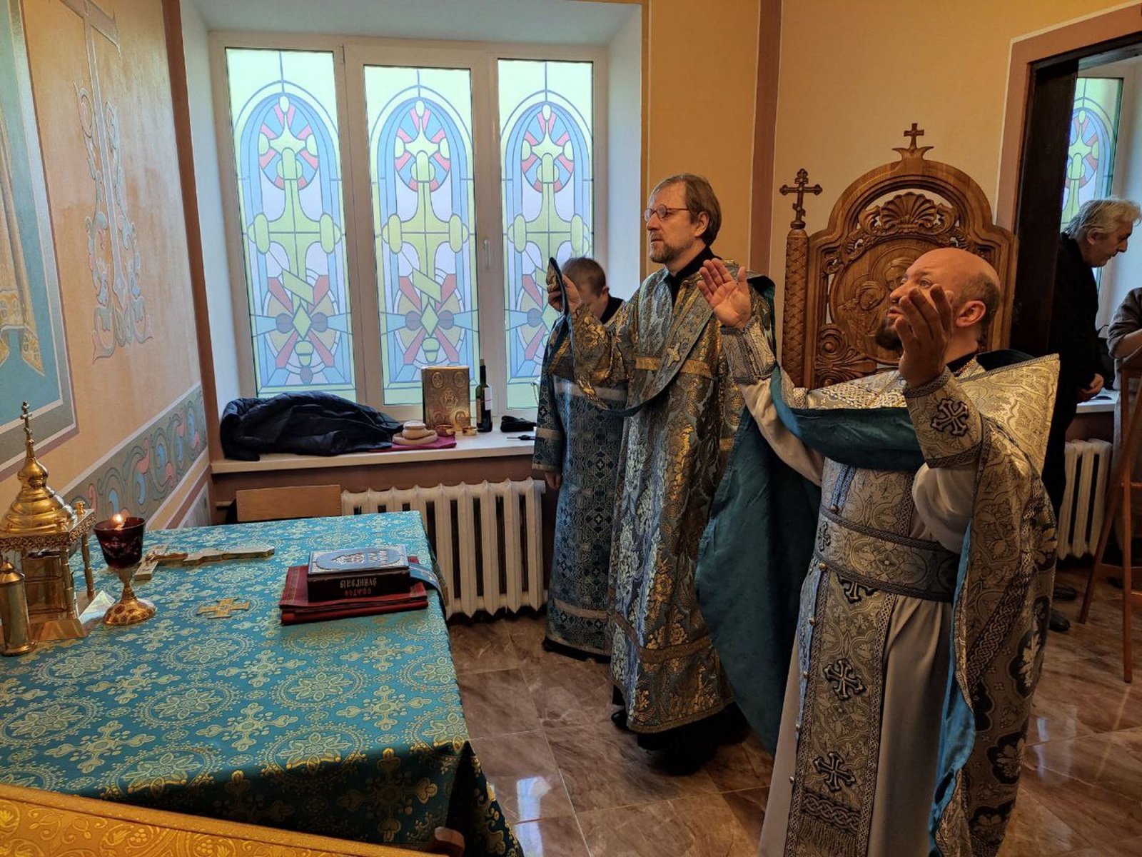 Отцу Андрею сослужили председатель Отдела по работе с медицинскими учреждениями Балашихинской епархии священник Павел Скрипник и ответственный за благотворительность и социальное служение в благочинии, клирик Богородицерождественского собора г. Орехово-Зуево священник Вадим Лебедев.