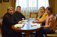 25 ноября состоялась рабочая встреча благочинного 1-го Егорьевского благочиннического округа протоиерея Сергия Кожевникова, методиста туристско-информационного центра «Егорьевск» Егорьевского историко-художественного музея Константина Братчикова, главного эксперта управление культуры, спорта и молодежной политики Светланы Аксеновой и индивидуального предпринимателя Елены Титовой.