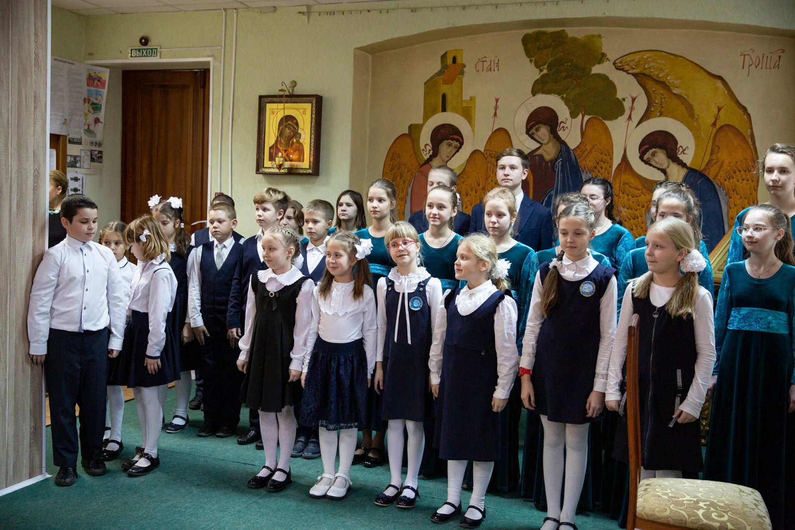 Сводный хор Православной Алексиевской гимназии под руководством регента А. А. Медведевой и концертмейстера И. И. Илларионовой исполнили песню «Марш Преображенского полка».