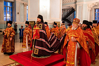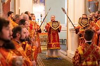 Его Высокопреосвященству сослужили настоятель Троицкого собора и благочинный Яхромского округа иерей Сергий Бернацкий, благочинный Рогачевского округа иерей Сергий Сафронов, настоятель Борисоглебского монастыря игумен Августин (Шорников), настоятель московского храма Святой Троицы на Грязех протоиерей Иоанн Каледа, духовенство Яхромского благочиния.