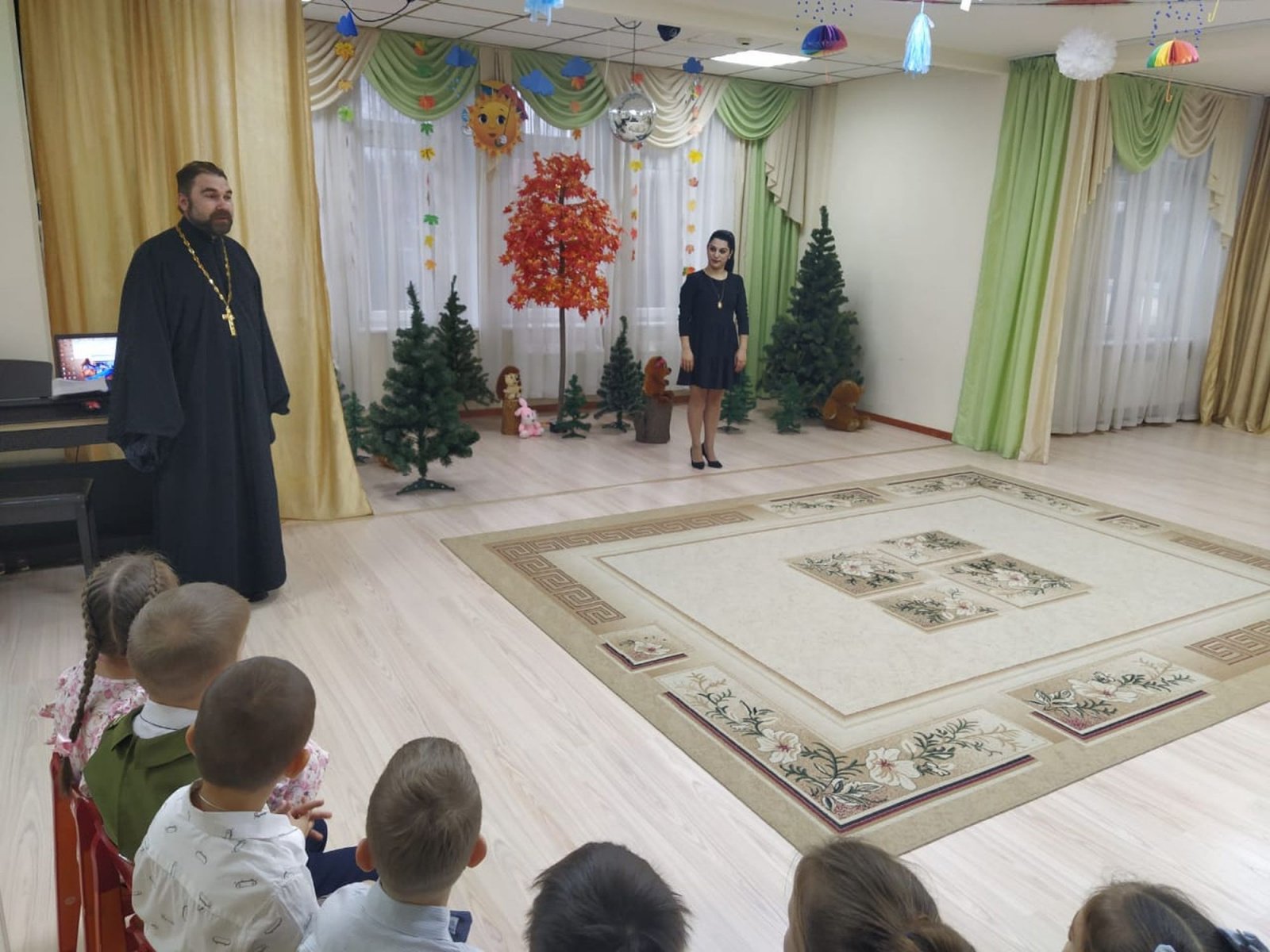 30 ноября настоятель храма священномученика Серафима поселка Икша священник Сергий Савёнок принял участие в праздничном утреннике в Икшанском детском саду «Огонег», посвященном Дню добра, и обратился к детям со словами нравственного назидания.