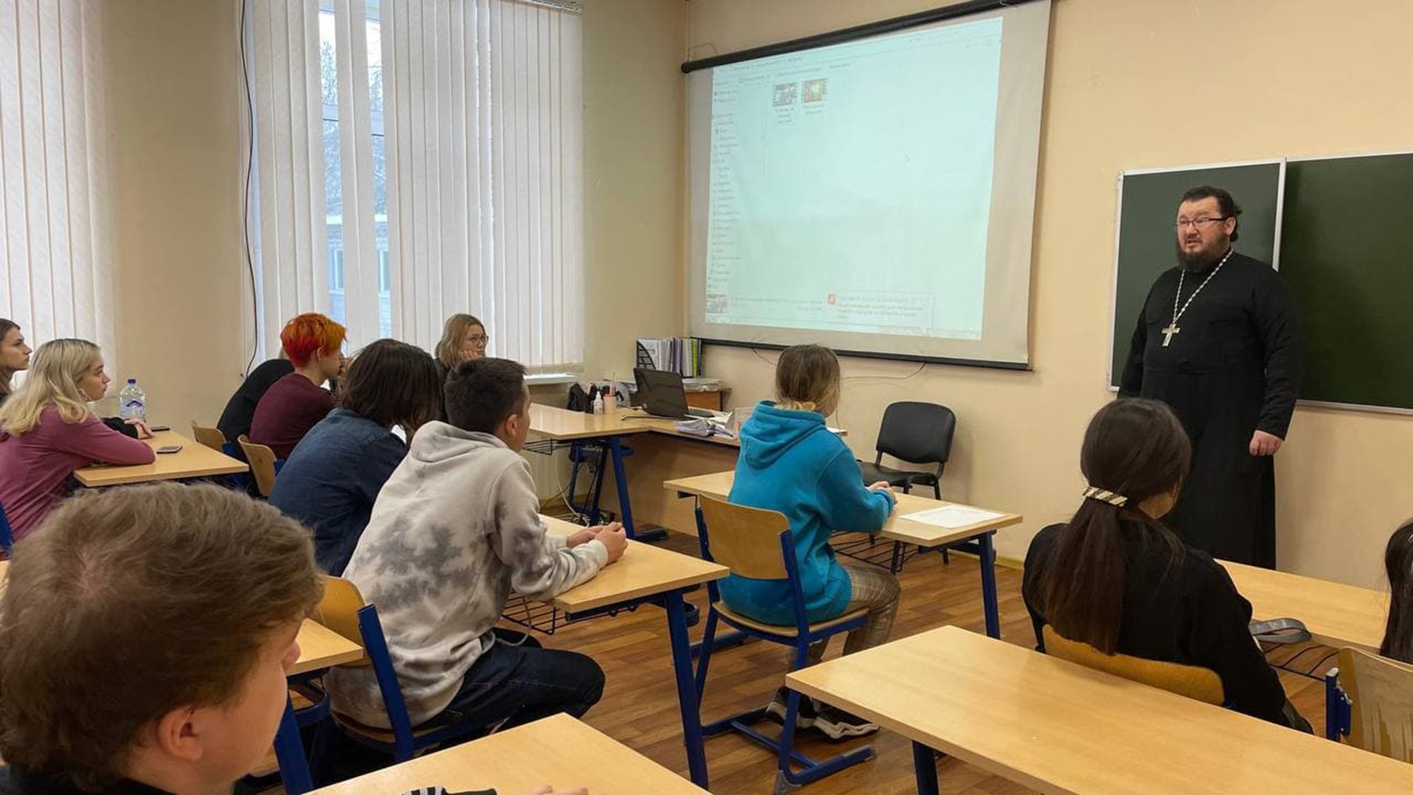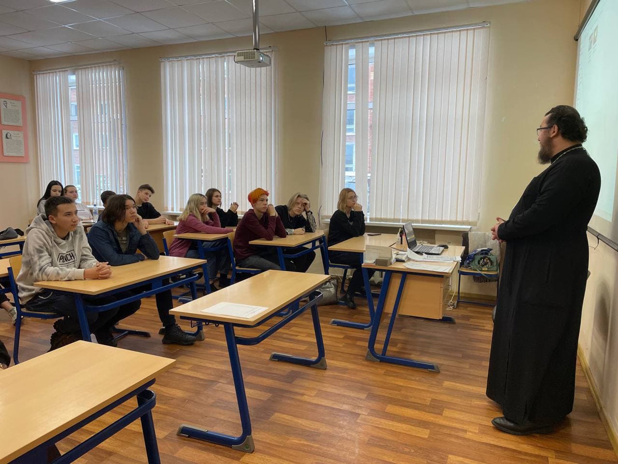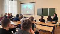 Настоятель Сретенского храма города Дмитрова протоиерей Дмитрий Скидаленко показал студентам фильм «В списках не значатся…», посвящённый подвигу детей на войне.