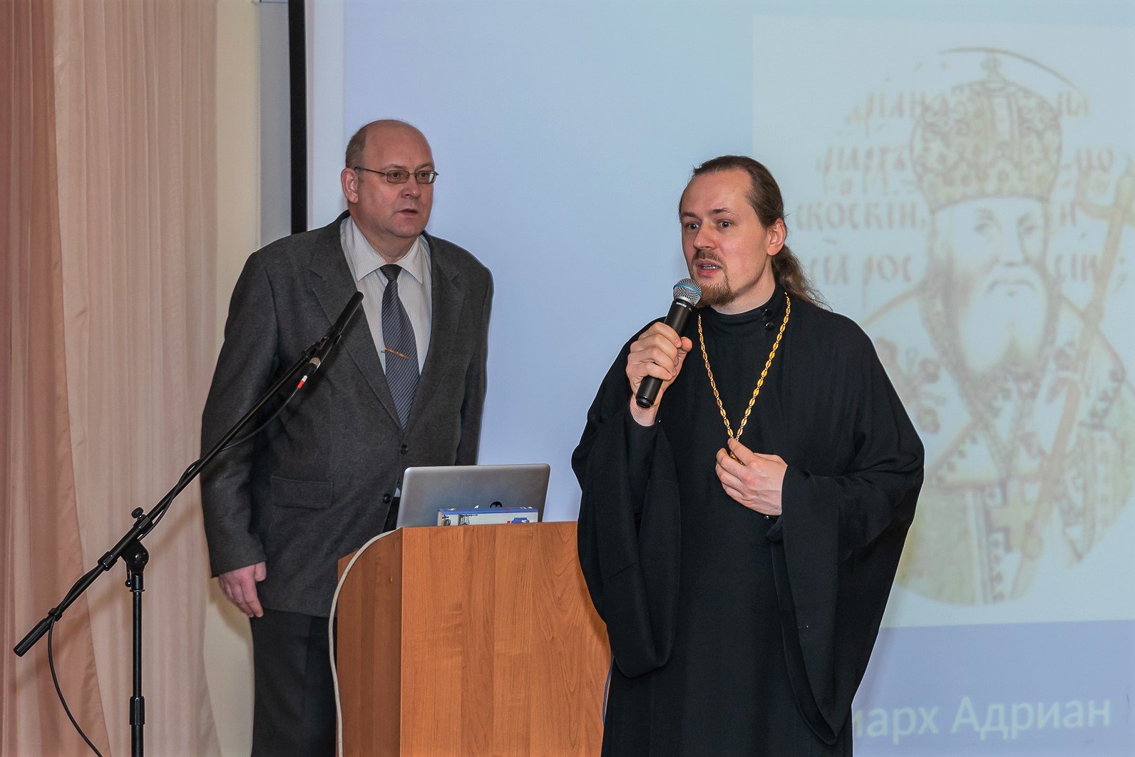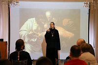 С докладами перед участниками семинара выступили кандидат исторических наук, доцент кафедры отечественной и всеобщей истории ГСГУ А.М. Бирюков и магистр богословия, кандидат педагогических наук О.В. Воскресенский. С заключительным словом к собравшимся обратился иерей Иоанн Бакушкин.